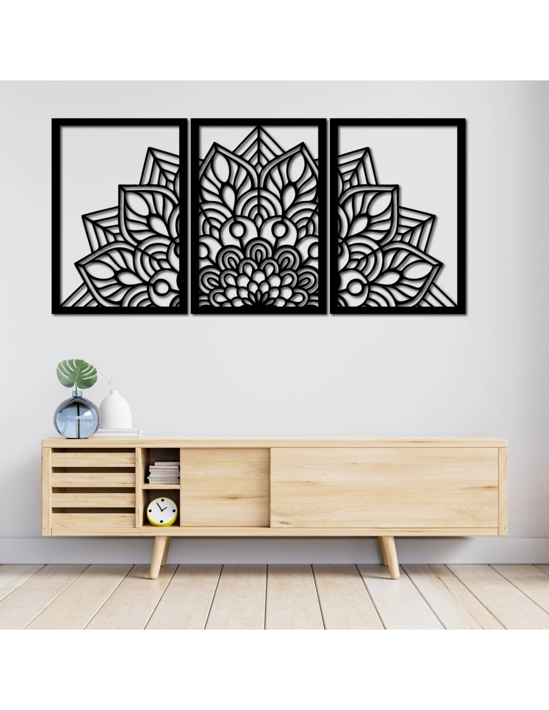 Fie că este vorba de un ceas de perete artistic în formă de mandală „florea vieții” cu siluete jucăușe de păsări sau de o mandală maiestuoasă în trei părți , aceste elemente deschid și măresc vizual spațiul datorită sculpturii lor precise.