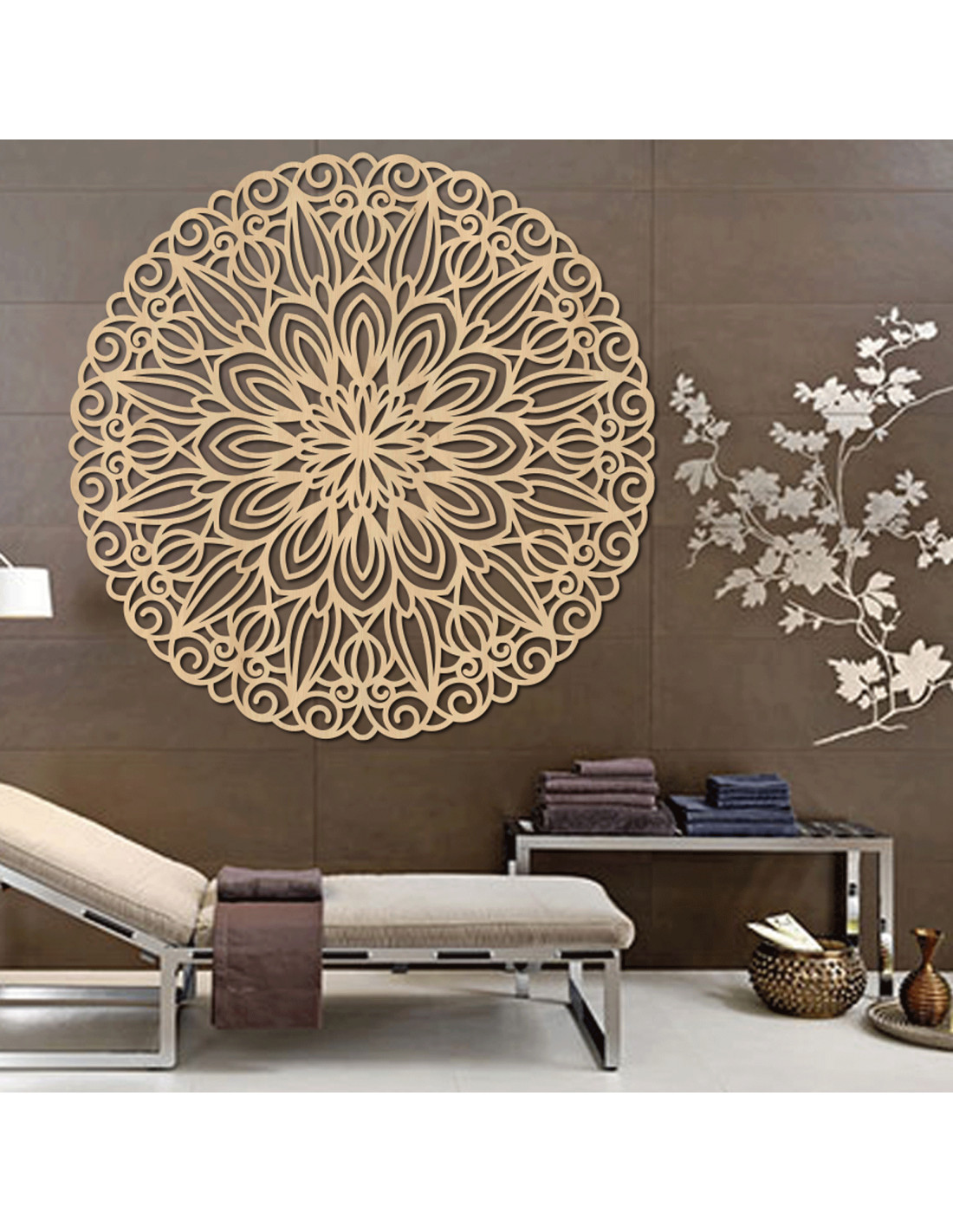 Mandala sculptată din lemn pentru perete, floarea timpului - ORIN