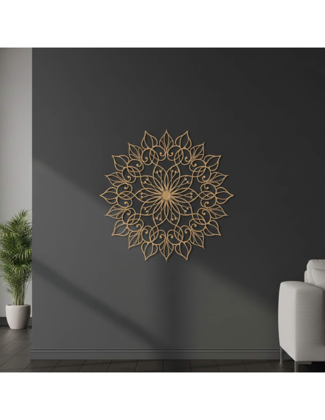Această decorațiune murală unică înfățișează mandala Floarea Vieții cu un model sculptat cu precizie. Nuanța aurie conferă spațiului un aspect luxos, cald și armonios , transformându-l într-un element de design distinctiv în orice interior.