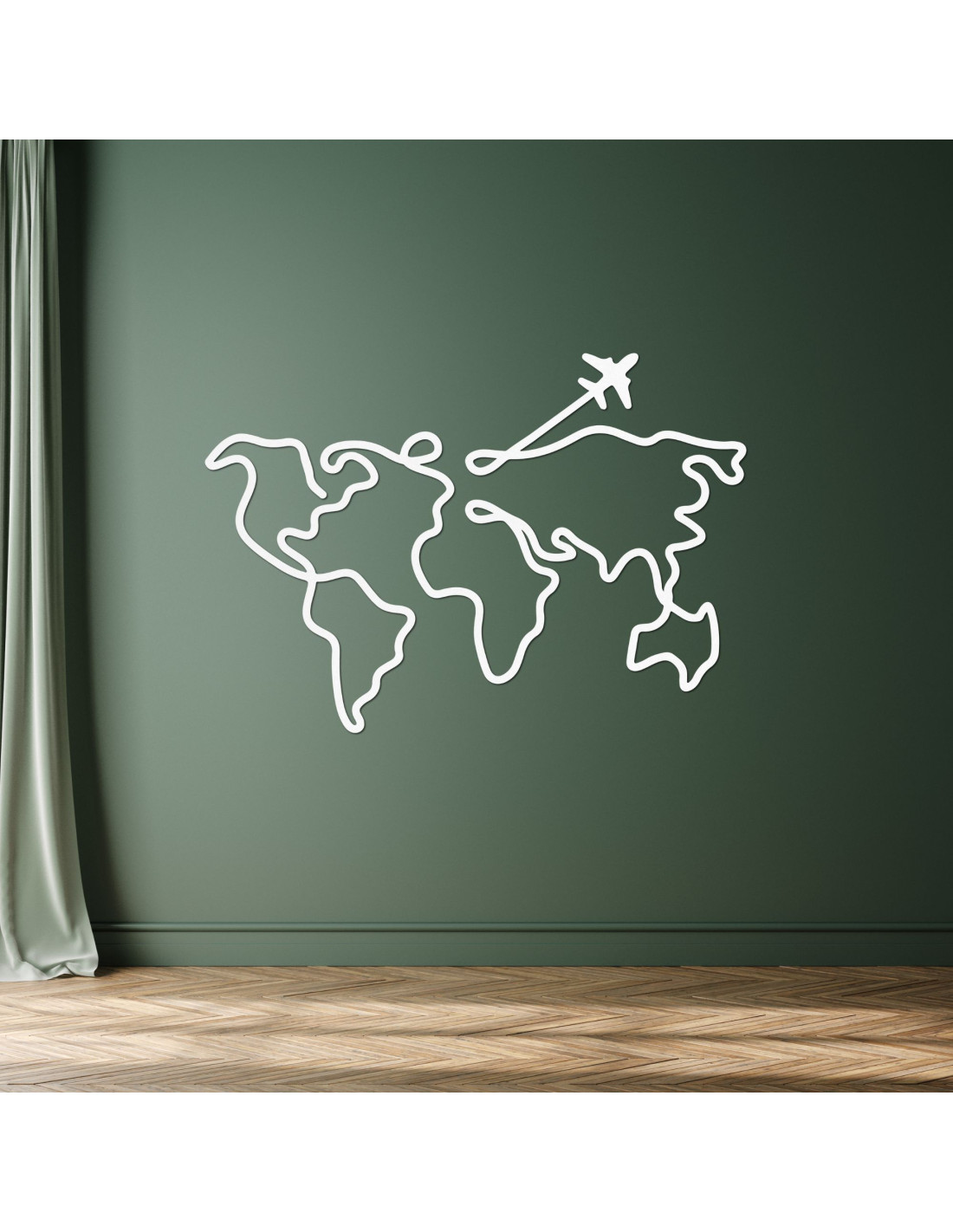 Hartă modernă a lumii din lemn cu un avion pentru iubitorii de călătorii