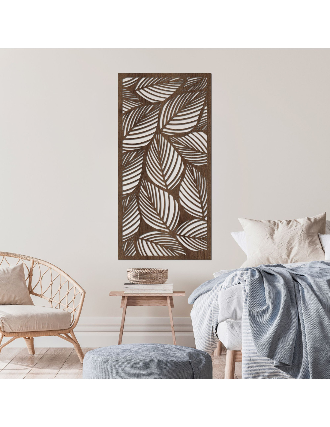 Decorațiune murală din lemn cu frunze – pictură tropicală pe panou | LUFUS