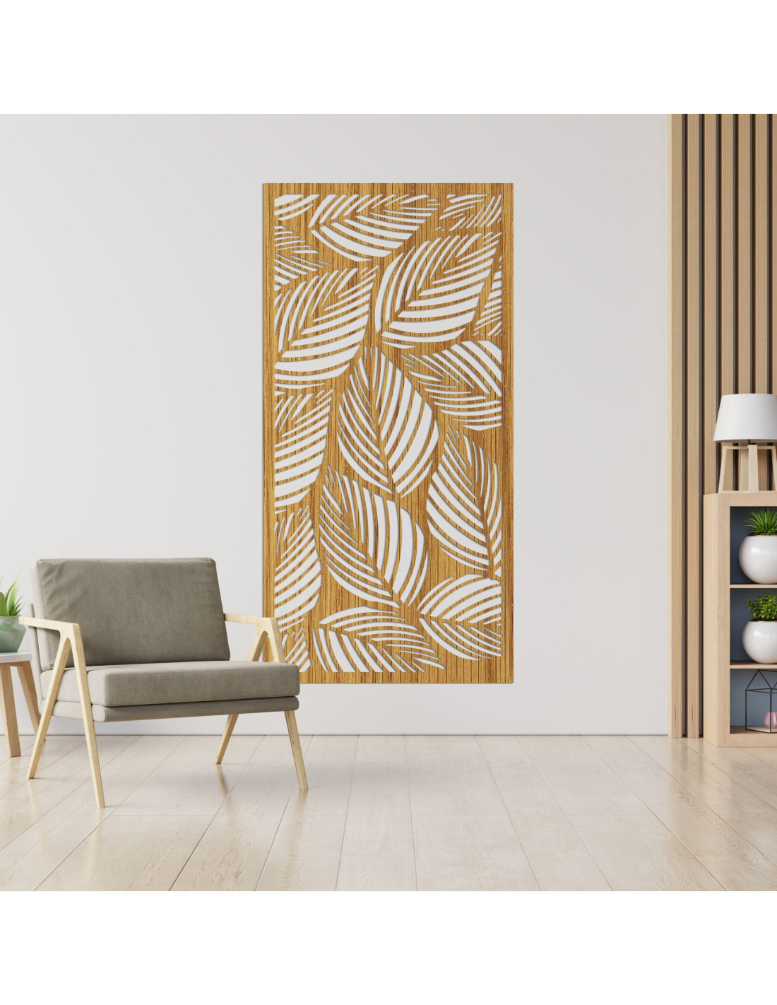 Decorațiunea din lemn cu model de frunze simbolizează creșterea, pacea și conexiunea cu natura.