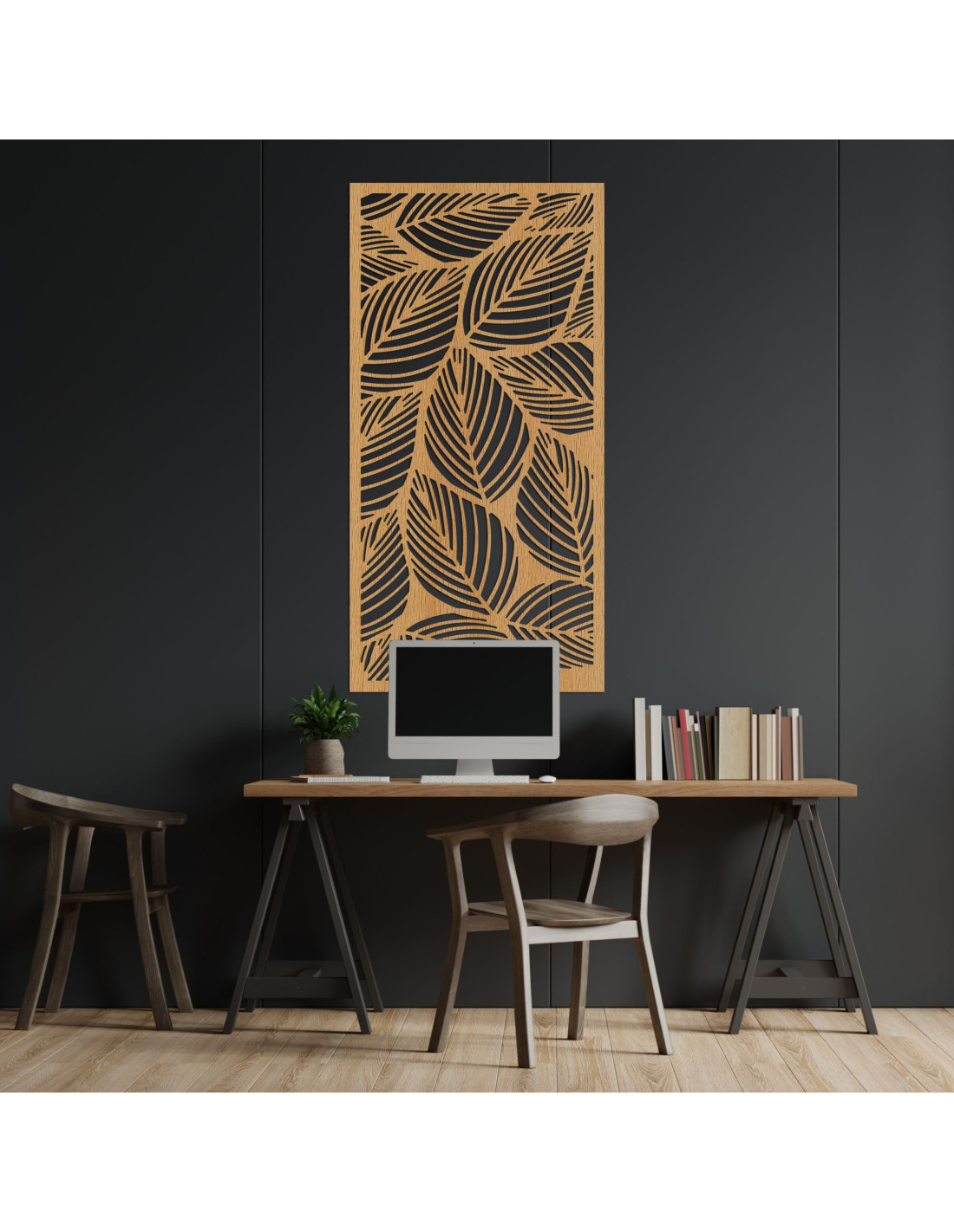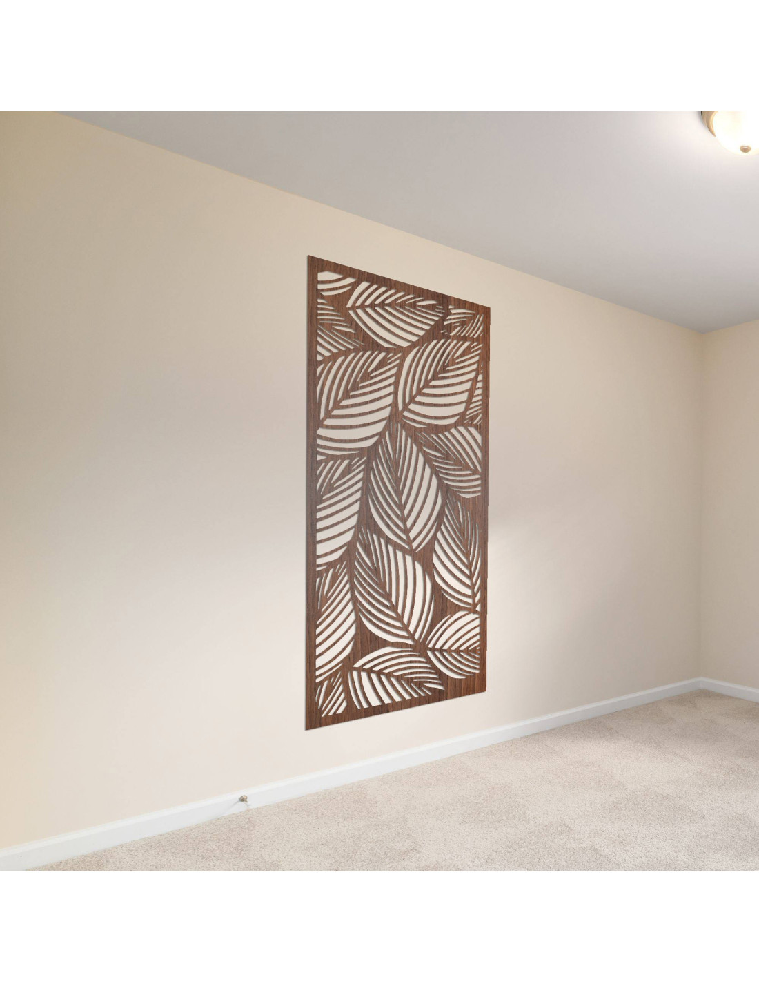 Decorațiunea din lemn cu model de frunze simbolizează creșterea, pacea și conexiunea cu natura.