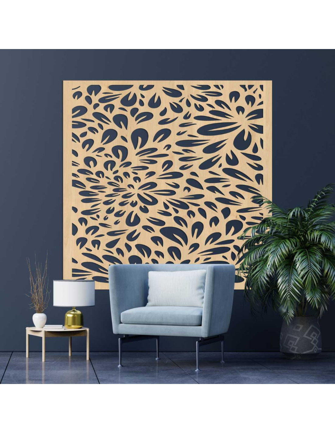 Panou de perete sculptat pătrat cu design floral | BOMB