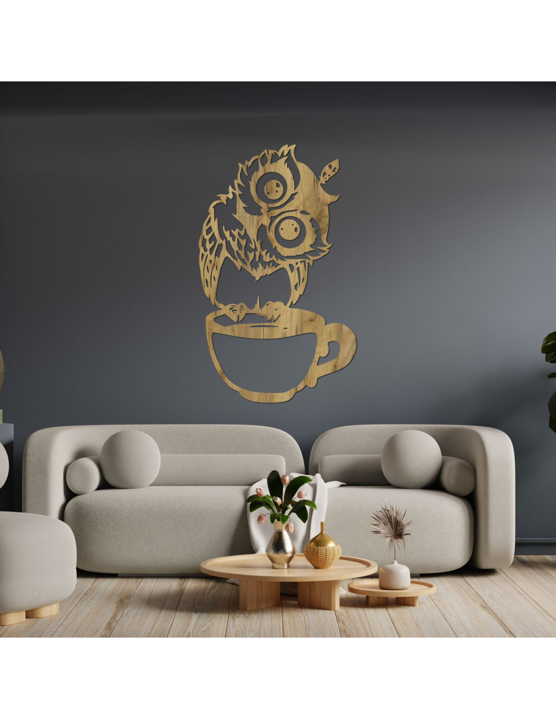 O bufniță din lemn așezată pe o cană va însenina instantaneu orice spațiu și vă va aduce un zâmbet pe față. Cu ochii săi mari și designul jucăuș, va completa perfect casa dvs. cu o piesă de natură și confort. Este perfectă pentru un perete, un raft sau ca un cadou pentru iubitorii de piese originale. Indiferent dacă sunteți în căutarea a ceva care să vă încânte spațiul sau doriți doar să aduceți o mică atmosferă de pădure în casa dvs.