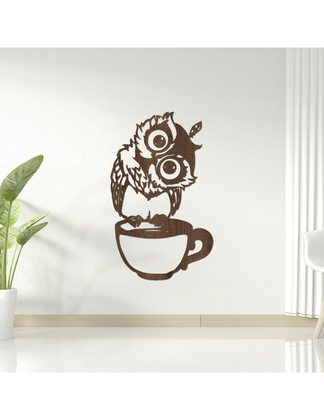 Pictură murală drăguță din lemn reprezentând o bufniță într-o cupă | Bufniță