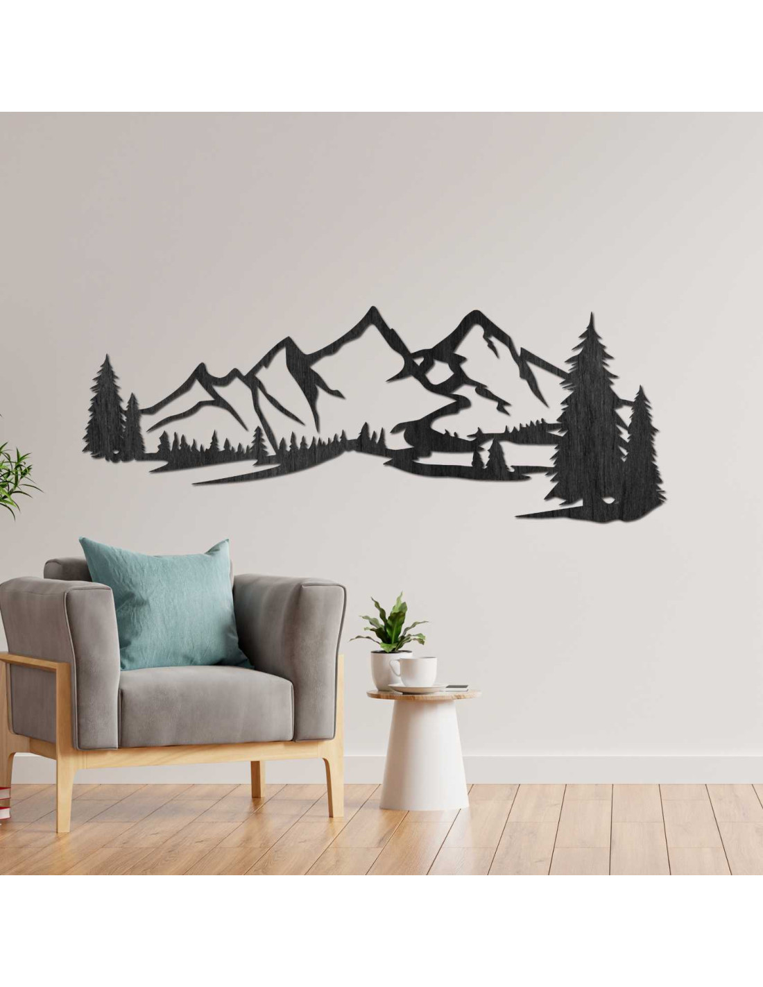 Decorațiunea din lemn „Munți și Pădure” este un element de design unic, care atrage imediat atenția prin crearea sa detaliată cu laser și aspectul natural.