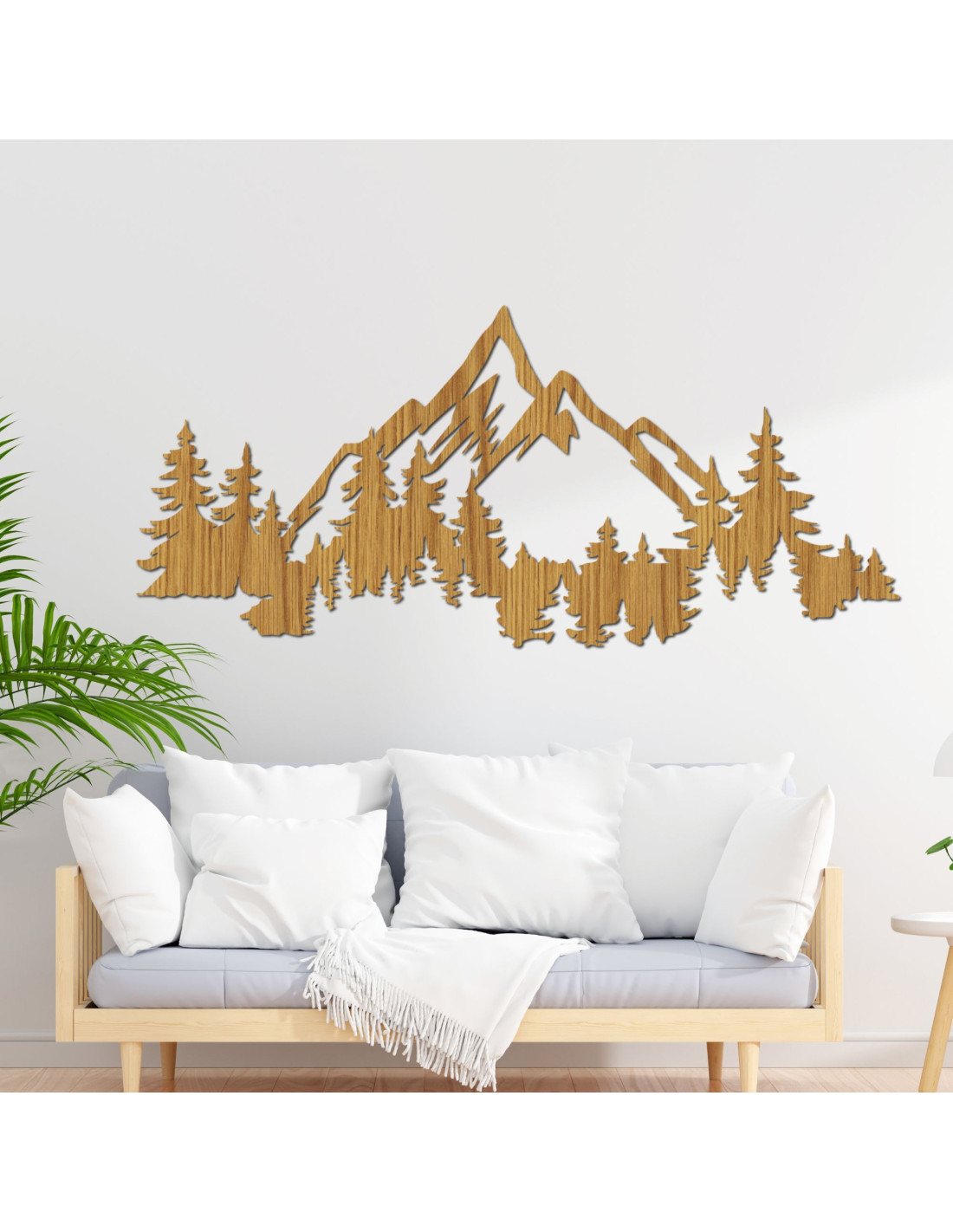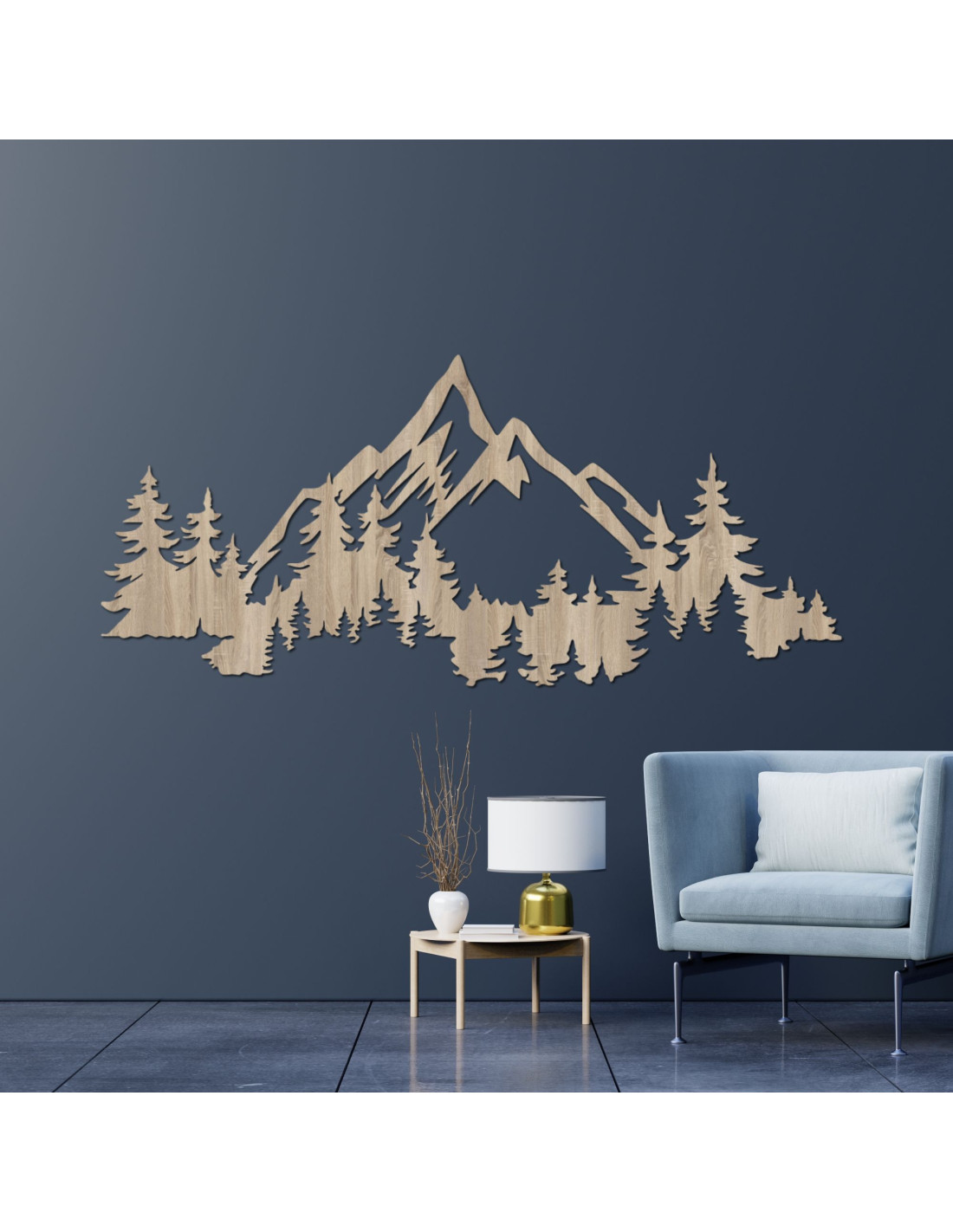 Pictură murală din lemn reprezentând un peisaj montan cu o pădure | SIERRAA