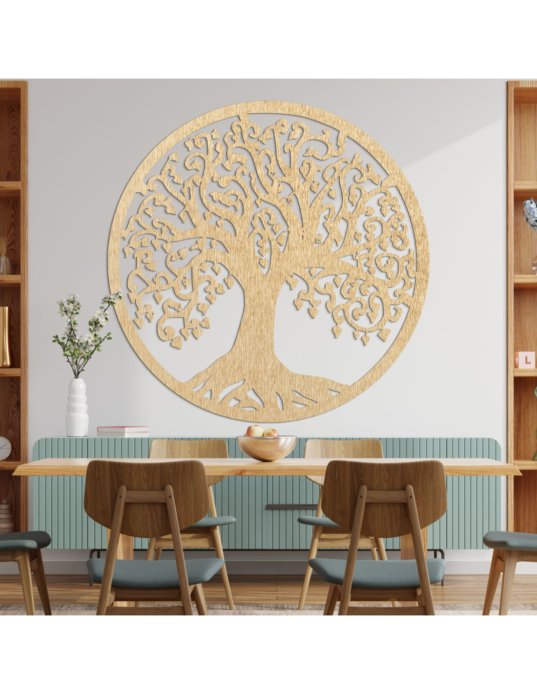 Această decorațiune din lemn FLOREO, Copacul Vieții, este un simbol al creșterii, forței și conexiunii cu natura. Reprezintă ciclul nesfârșit al vieții și aduce armonie și echilibru în casa ta.
