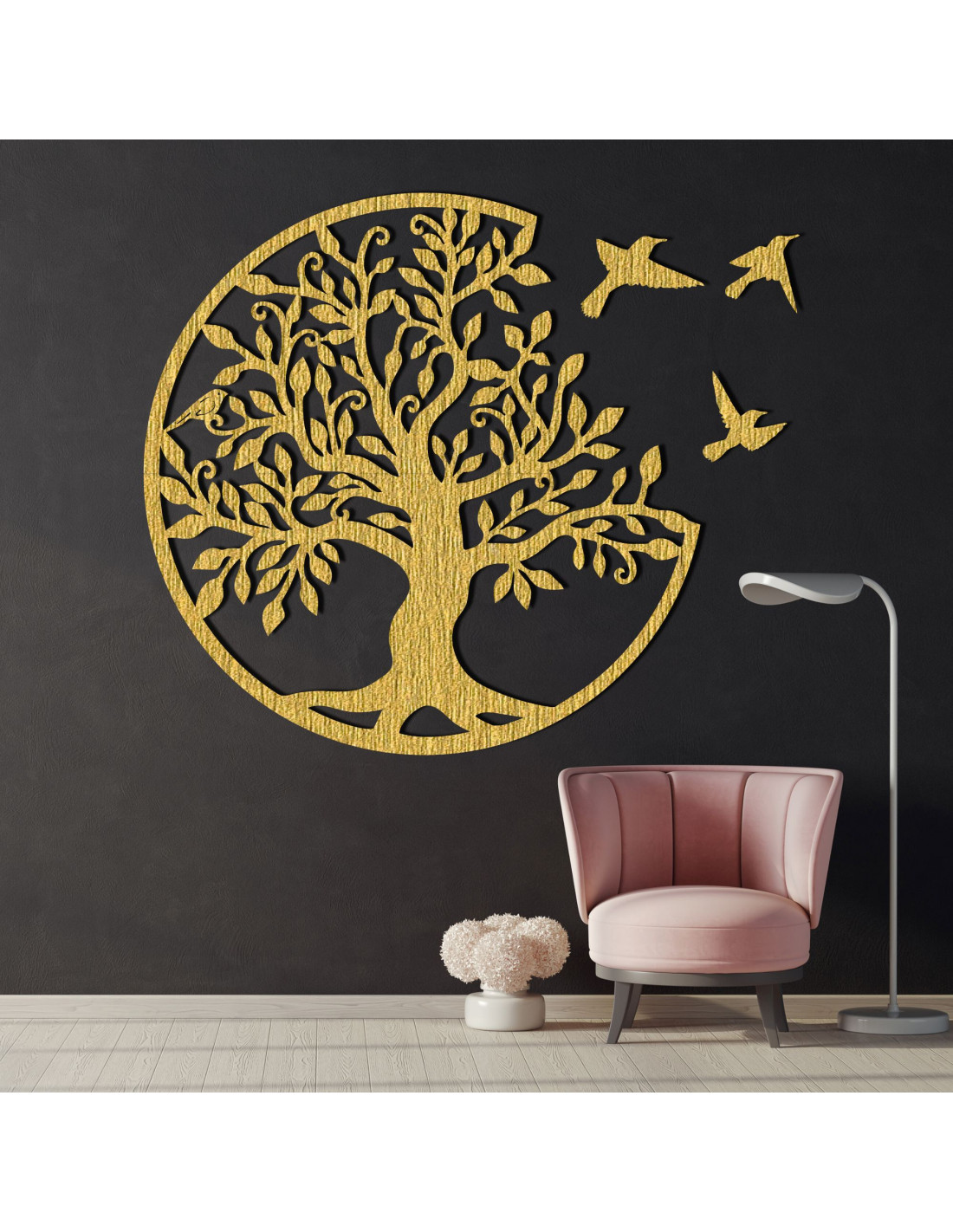 Pomul vieții cu păsări zburătoare simbolizează libertatea, creșterea și armonia naturii într-un design modern elegant.
