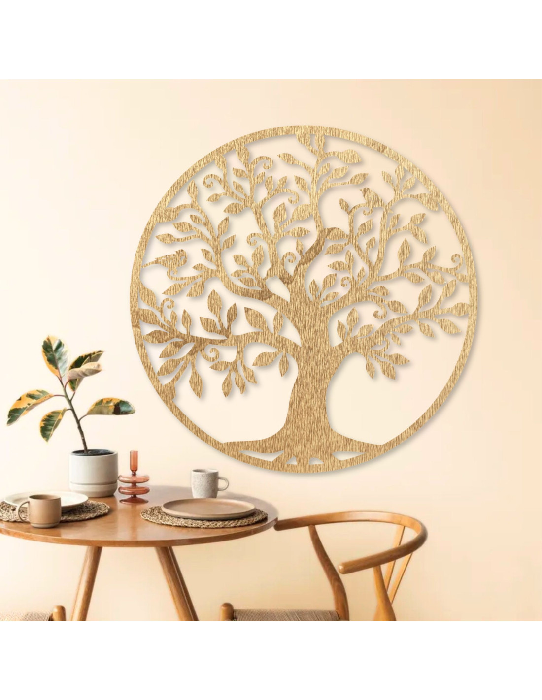 Decorațiunea din lemn în formă de pom al vieții este o combinație perfectă între designul natural și arta elegantă . Simbolizează legăturile familiale , creșterea și armonia , creând o atmosferă plăcută în orice cameră. Lucrarea de înaltă calitate și sculptura detaliată garantează un aspect unic. O alegere excelentă ca și cadou sau un plus elegant pentru interiorul dumneavoastră.