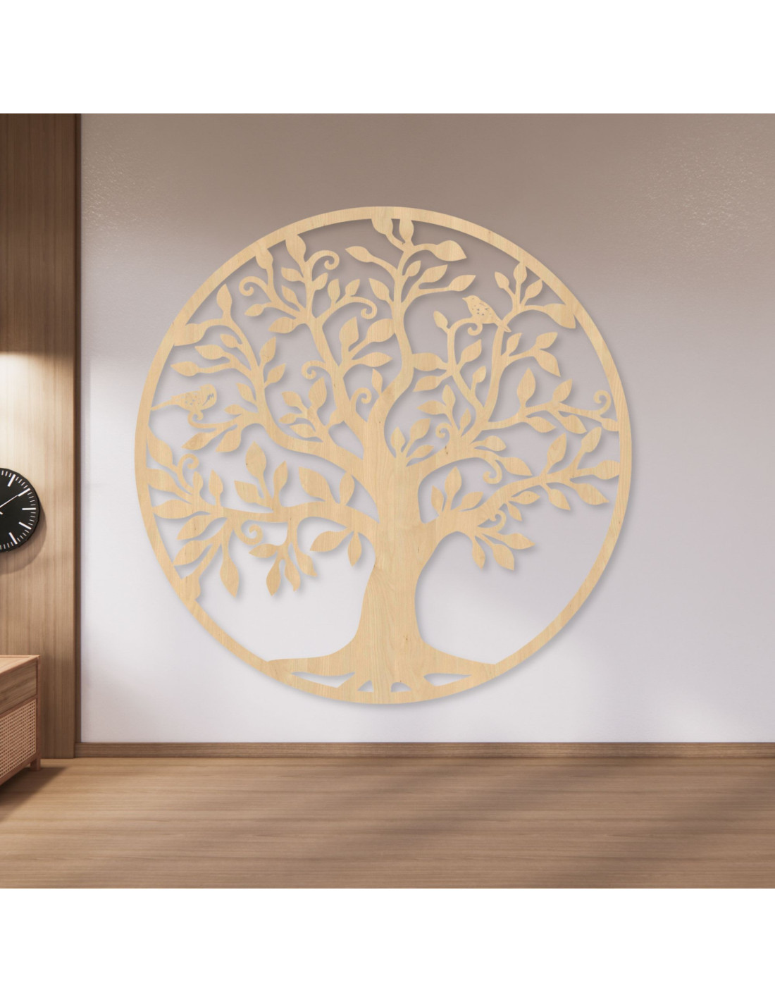 Elegantul decorațiune circulară reprezentând pomul vieții, sculptat din HDF de înaltă calitate , combină frumusețea naturală cu măiestria artistică.
