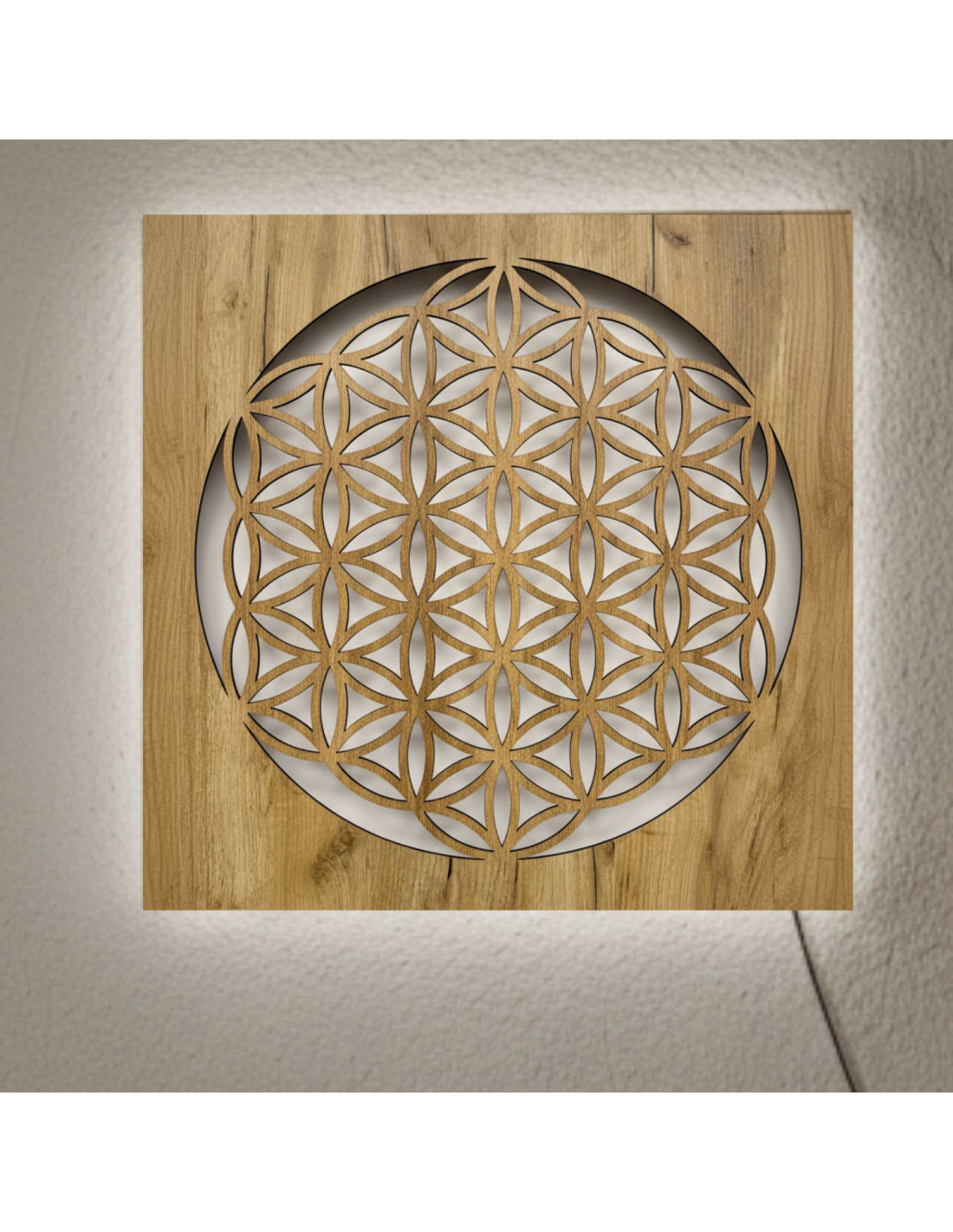 Pictură din lemn cu iluminare din spate Floarea Vieții – decorațiune murală cu mandală LED | MONEN
