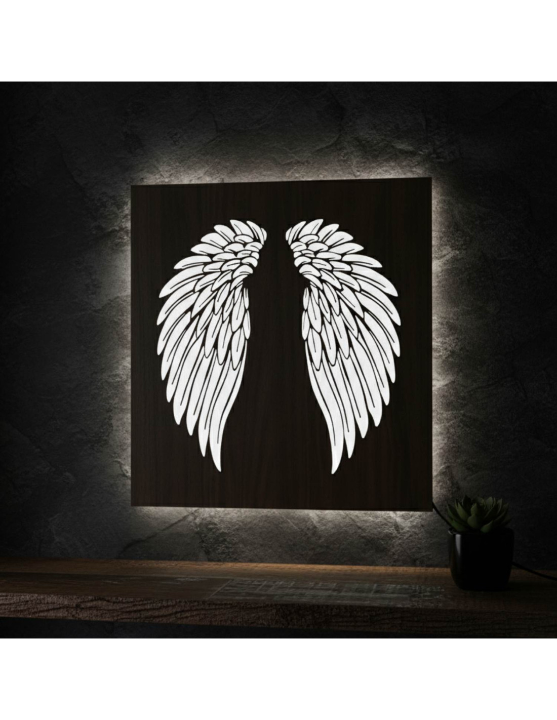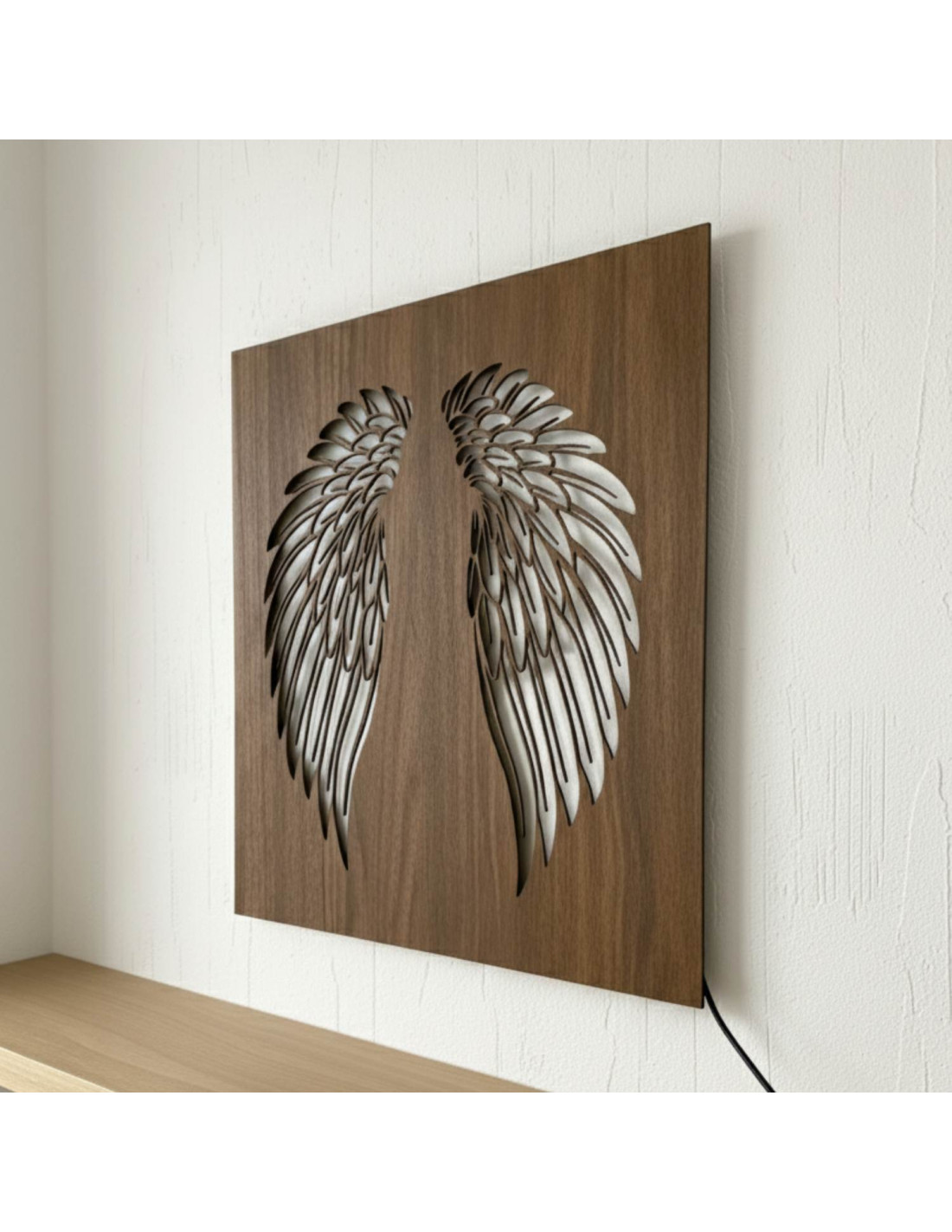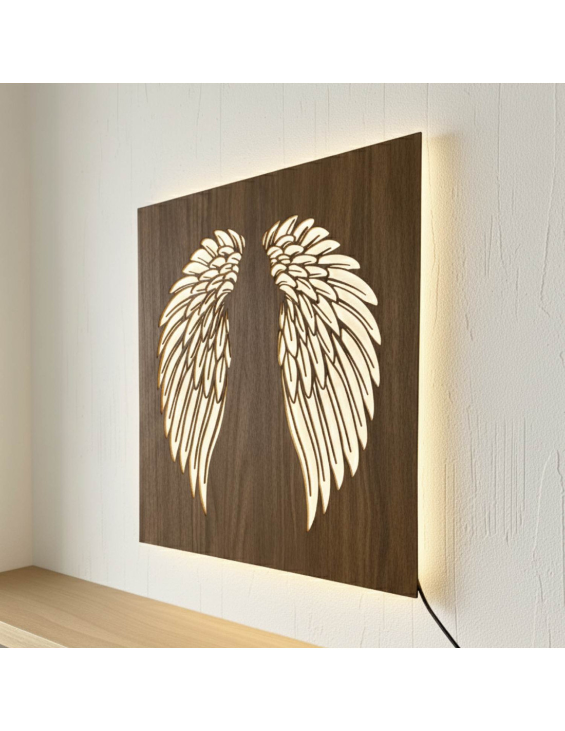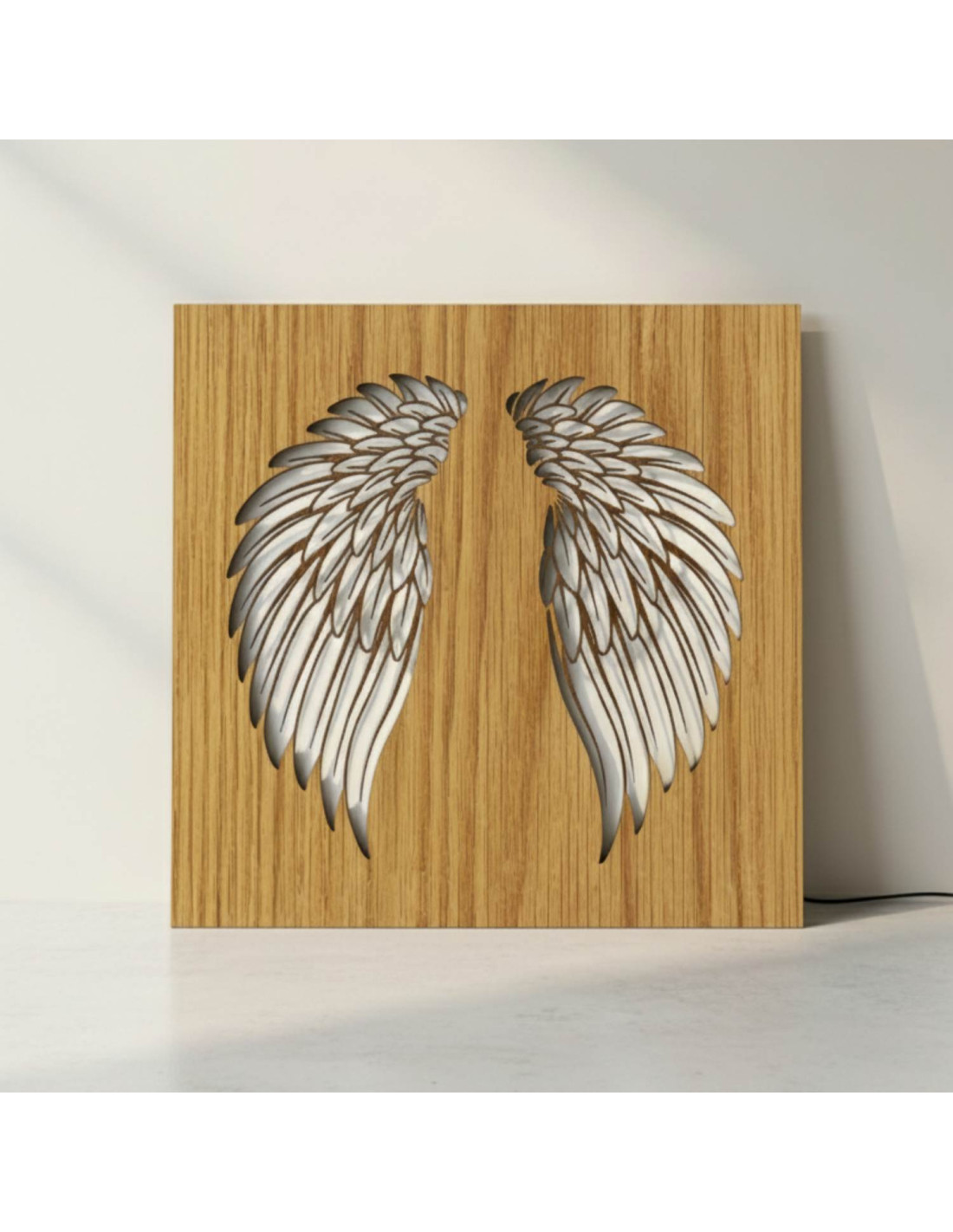 Tablou din lemn cu iluminare din spate cu LED - Aripi de înger pe perete - MULO