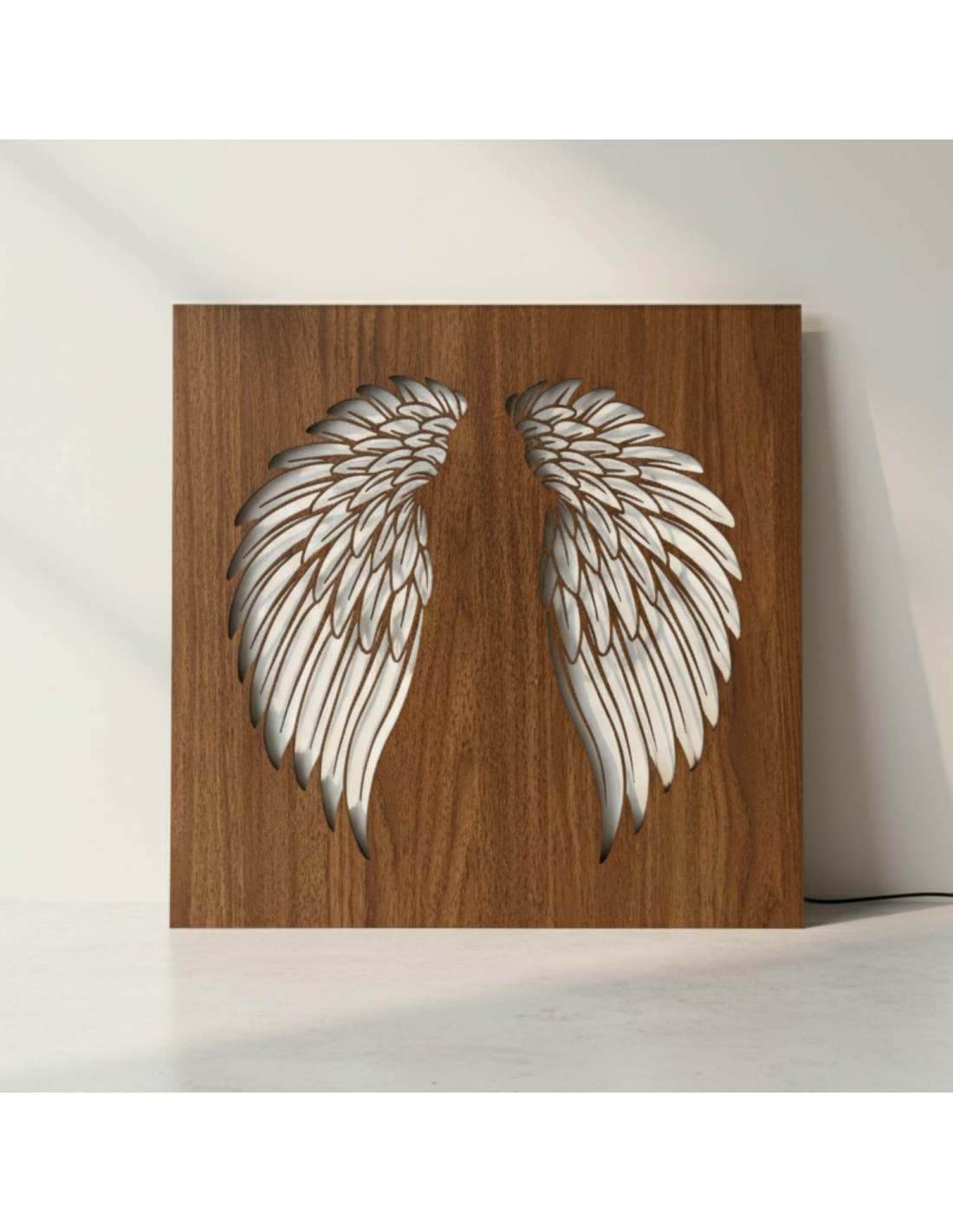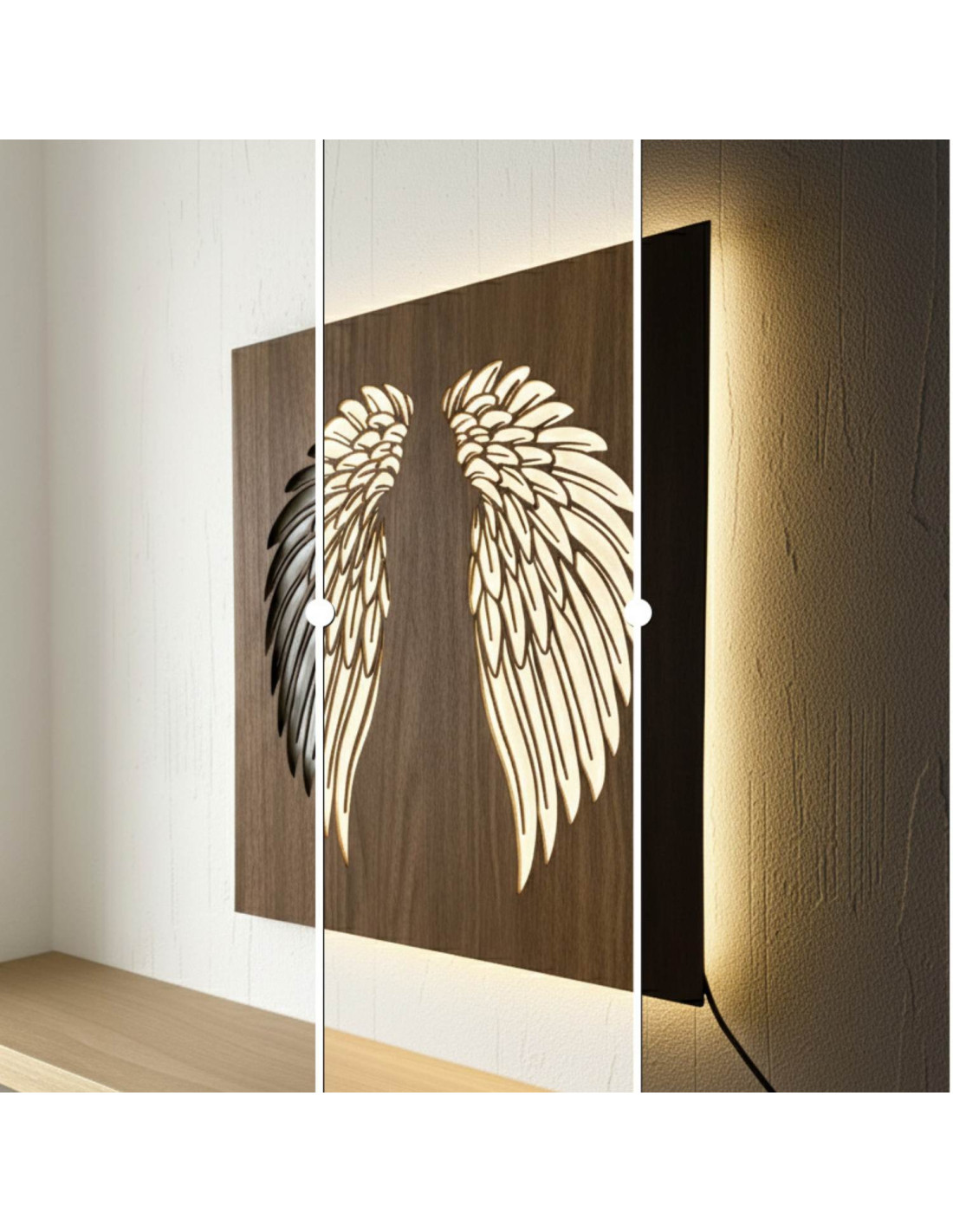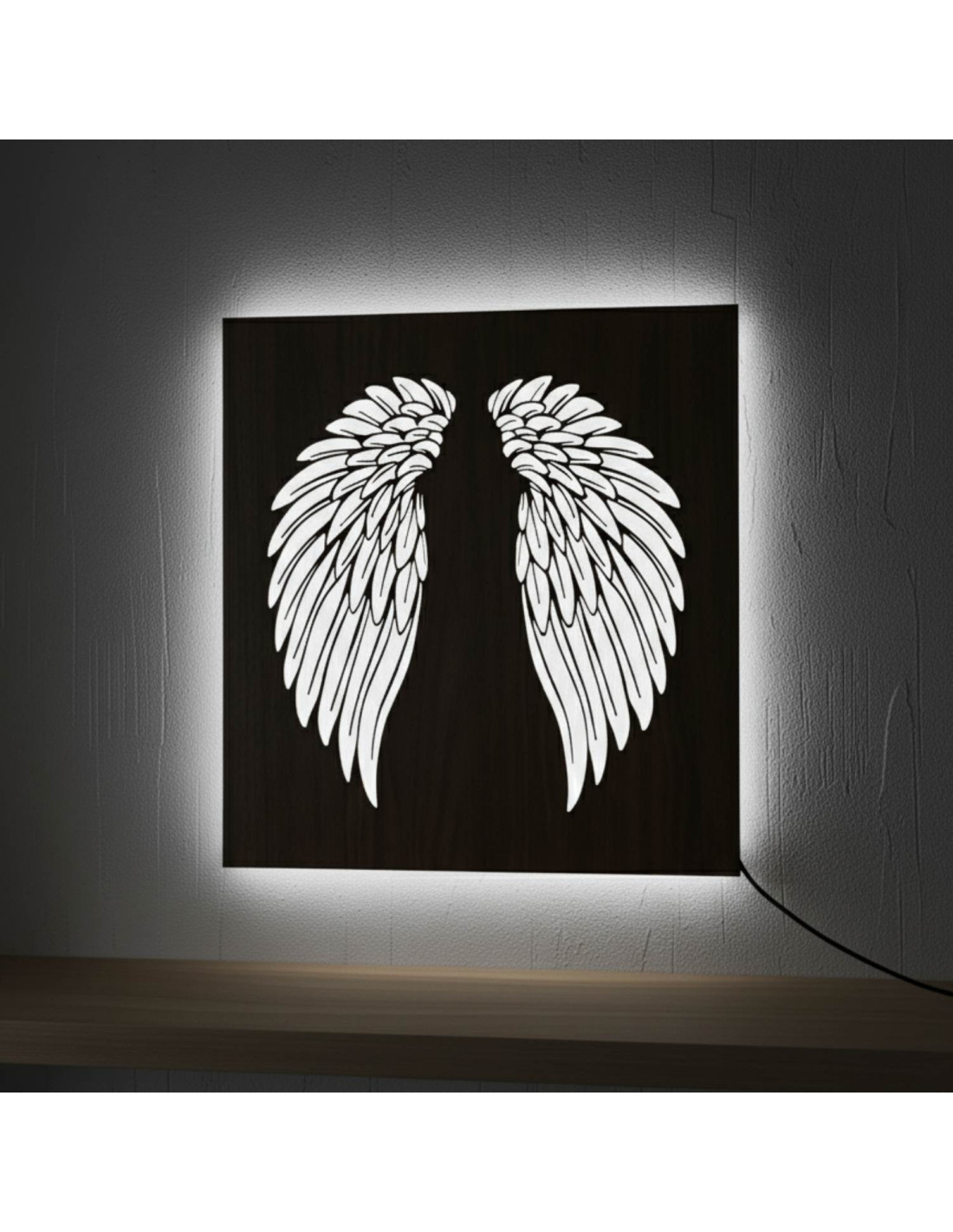 Tablou din lemn cu iluminare din spate cu LED - Aripi de înger pe perete - MULO