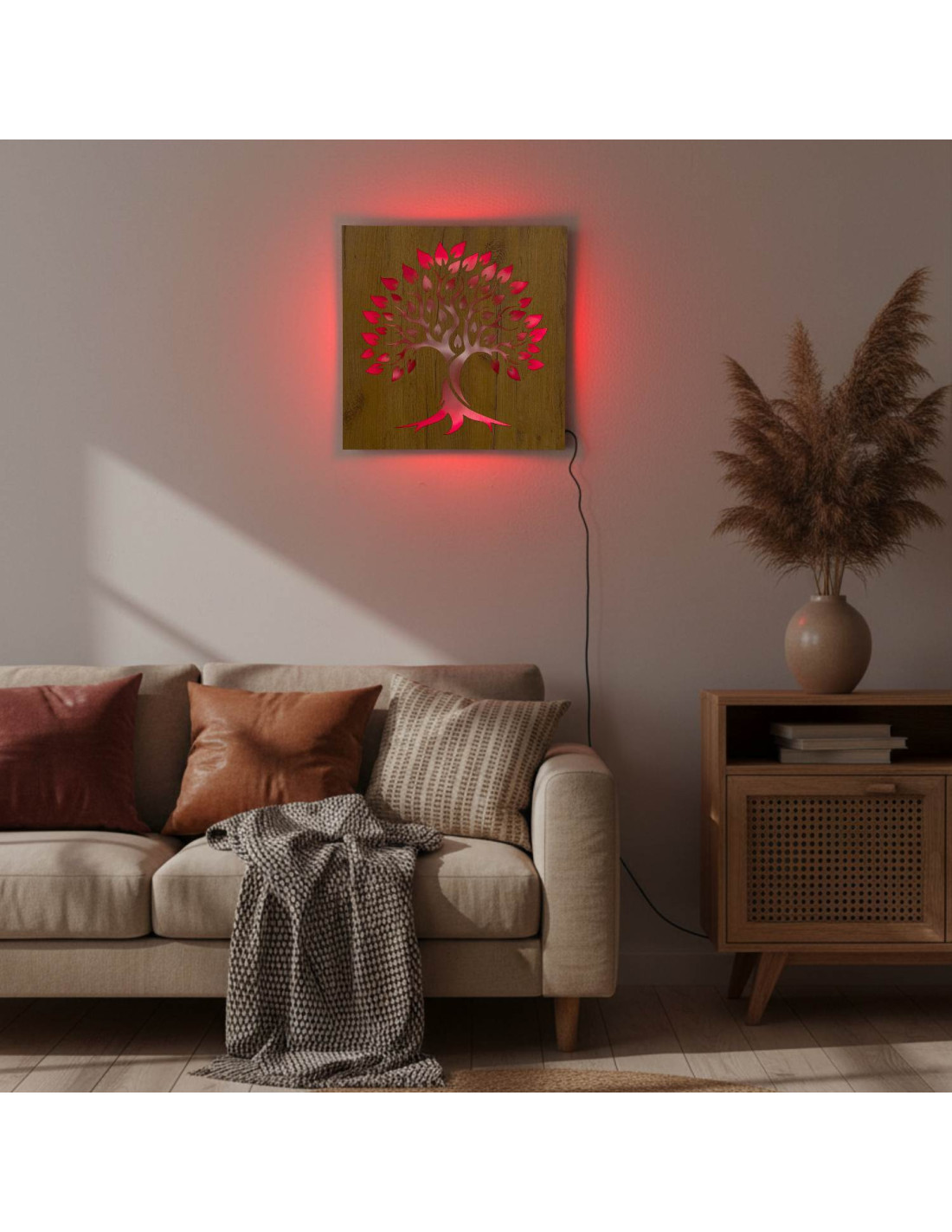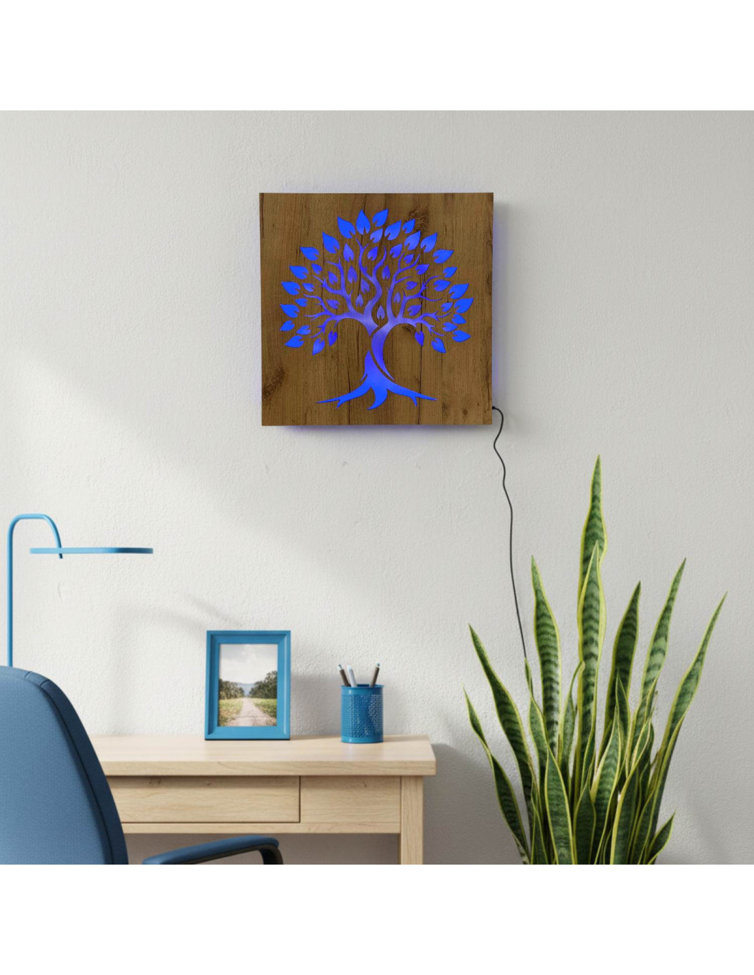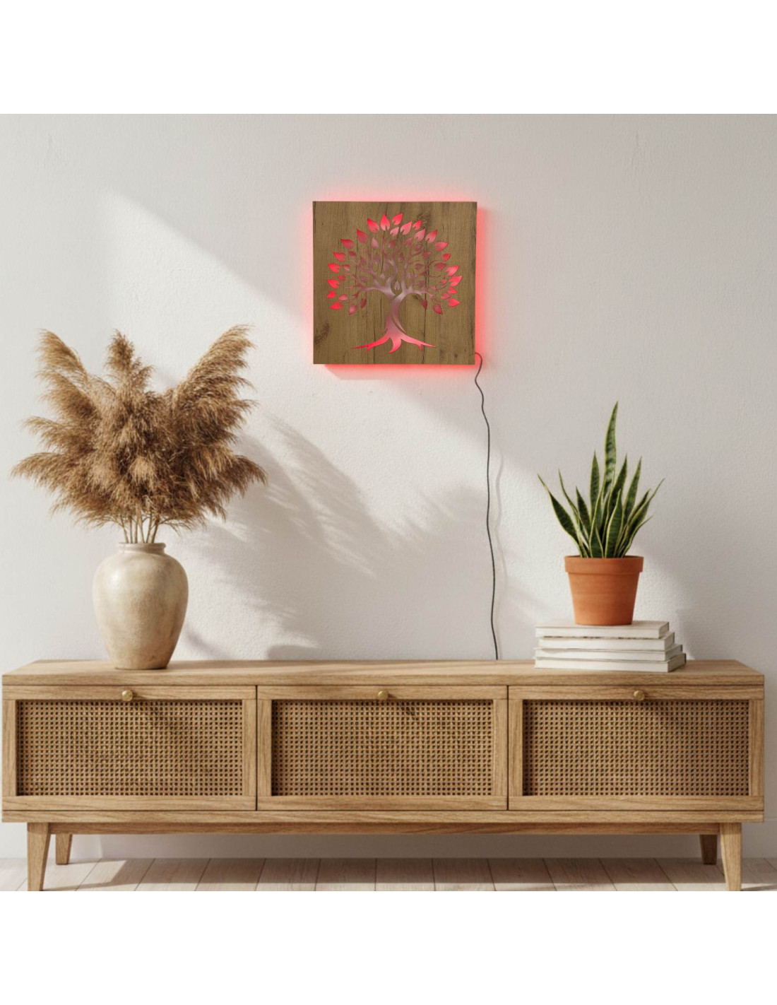 Tablou din lemn cu iluminare din spate „Arborele Vieții” decorațiune de perete cu LED | BAKE