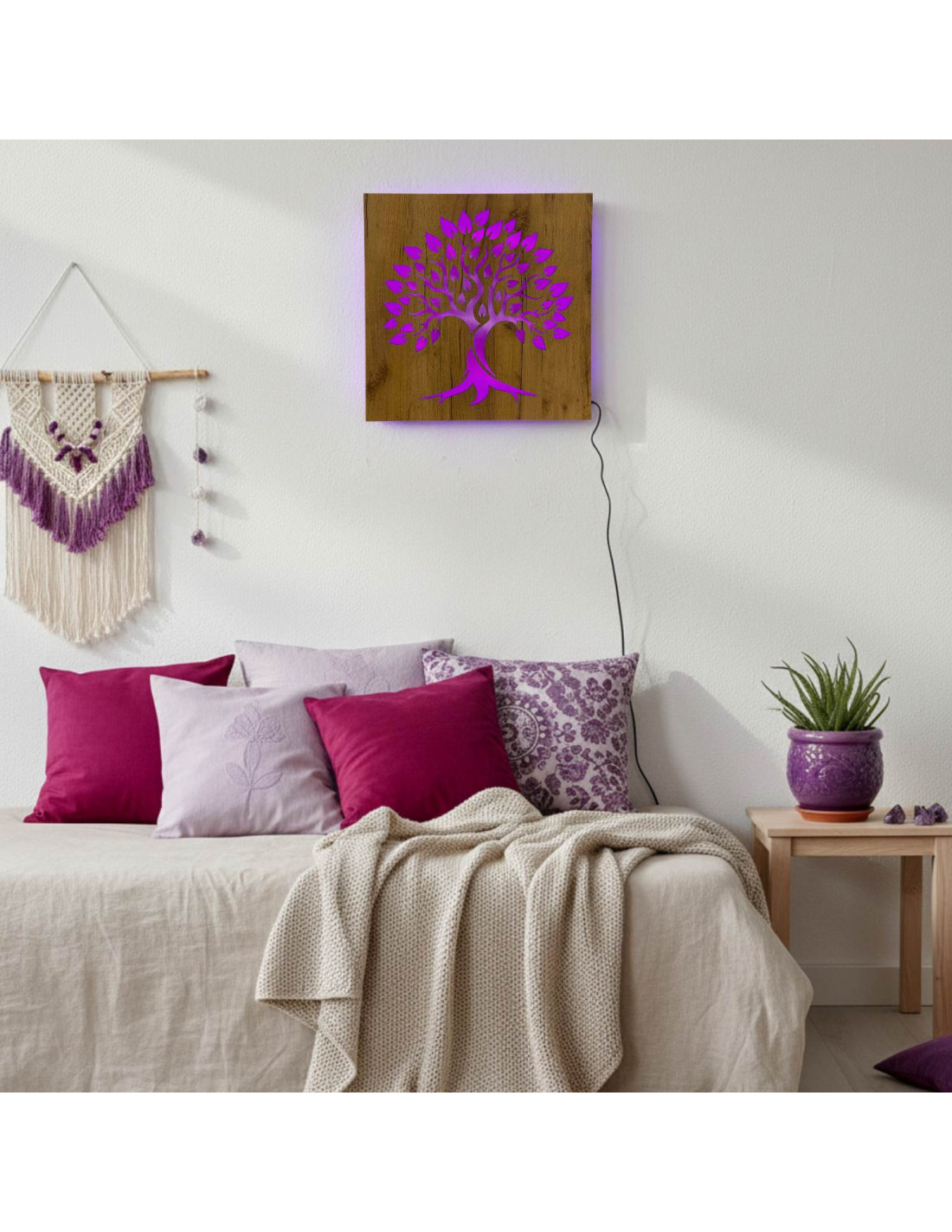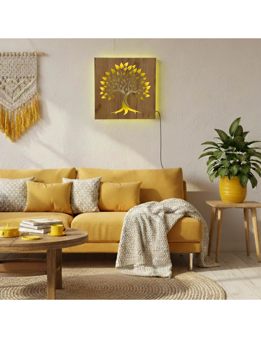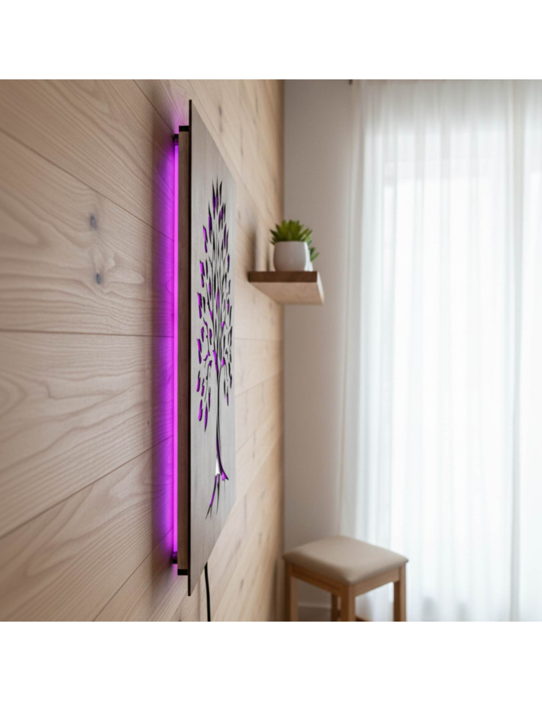 Tablou din lemn cu iluminare din spate „Arborele Vieții” decorațiune de perete cu LED | BAKE